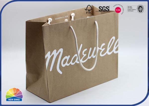 White Printed Brown Kraft Paper Gift Bag Package With Knoted Handles